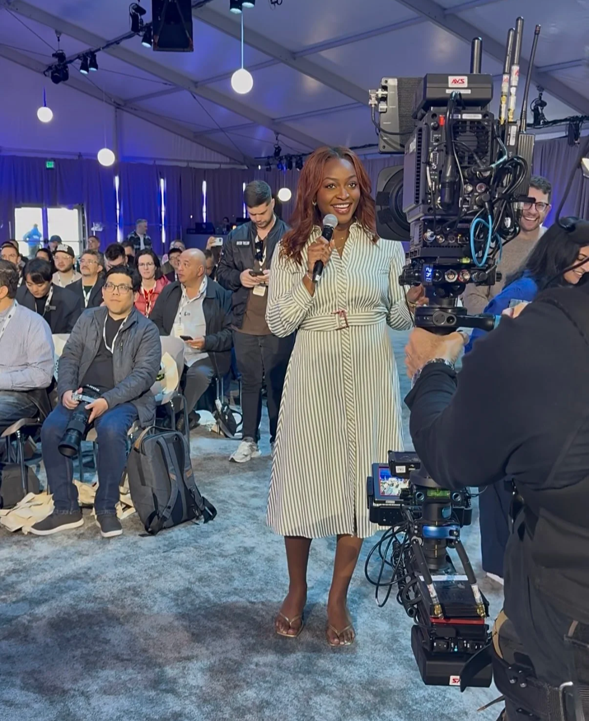 The woman behind the mic, the message, and the moment.